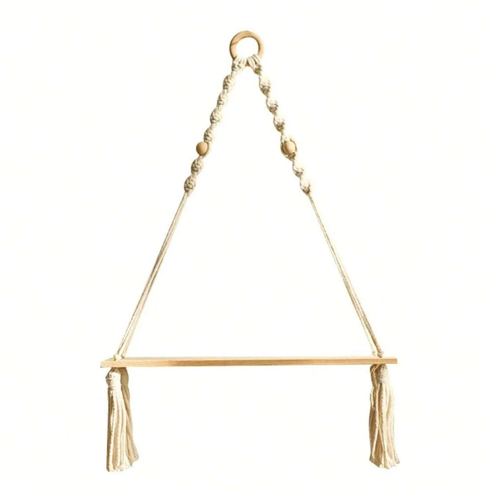 This boho macrame hanging shelf brings rustic charm and stylish function to your home. Handmade with a woven macrame design and wooden board, it creates a warm, natural look. Perfect for bedrooms, nurseries, bathrooms, or living rooms, it adds a decorative touch to any wall. The floating design saves space while offering practical storage. Use it to display plants, candles, books, or small decorative items. Its lightweight structure makes it easy to hang and adjust. Crafted with durable rope and sturdy wood, it combines beauty with strength. The simple rustic style blends well with boho, farmhouse, or modern interiors. Ideal for small spaces, apartments, or college dorms, it brings both style and utility. Elevate your wall décor with this unique and versatile macrame hanging shelf.