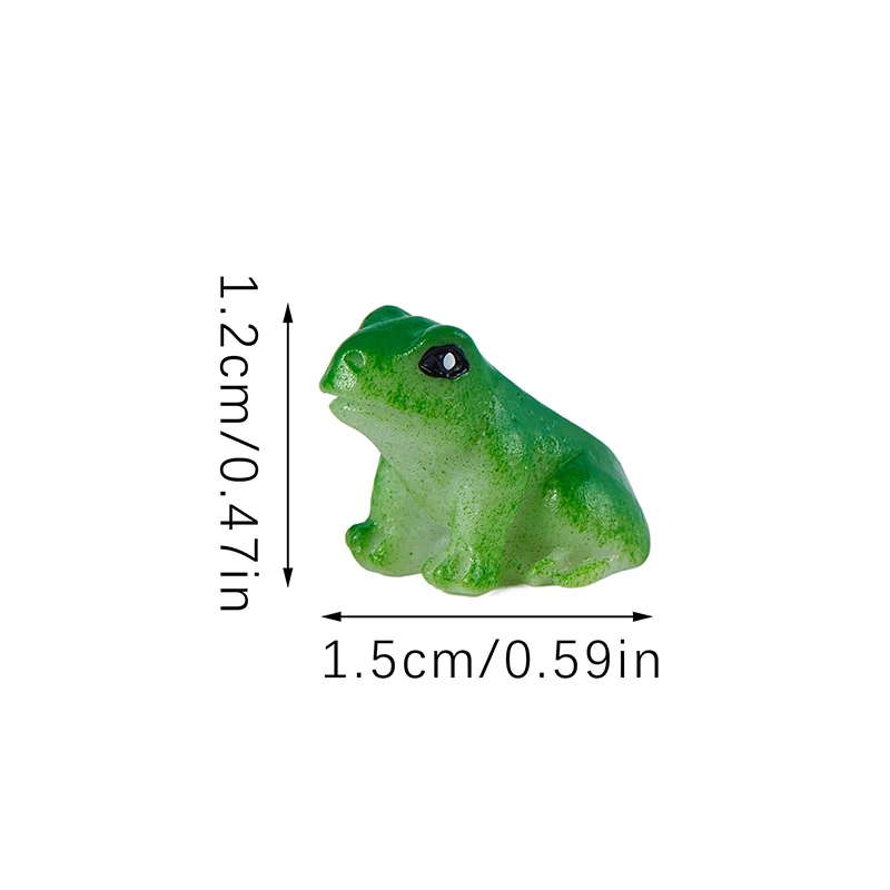 Add a playful touch to your home or garden with these mini frog resin statues. Each figurine is carefully crafted with charming details and vibrant colors. Perfect for fairy gardens, micro landscapes, and terrariums, they bring a whimsical vibe to any space. These small animal models are lightweight and easy to place on desks, shelves, or plant pots. Made from durable resin, they are designed to last both indoors and outdoors. Great for party decorations, they add a fun and cheerful element to themed events. Their compact size makes them perfect for DIY projects, crafts, or dioramas. Kids and adults alike will enjoy their cute and lively appearance. They also make delightful gifts for frog lovers and collectors. Bring joy, creativity, and a touch of fairy-tale magic with these adorable mini frog ornaments.
